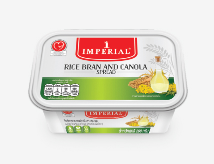 Imperial Rice Bran & Canola Spread has the advantages listed above. As a result, it is another healthy product option that combines rice bran oil and canola oil in a 2 IN 1 form that is good for health in one jar. The product received a "Food for the Heart" badge from the Heart Foundation of Thailand under the Royal Patronage. This ensures that the product will not have a negative impact on heart health. Good health begins with this jar, which is now available at major supermarkets.