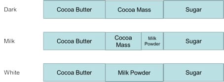 ส่วนประกอบของช็อคโกแลตแต่ละชนิด