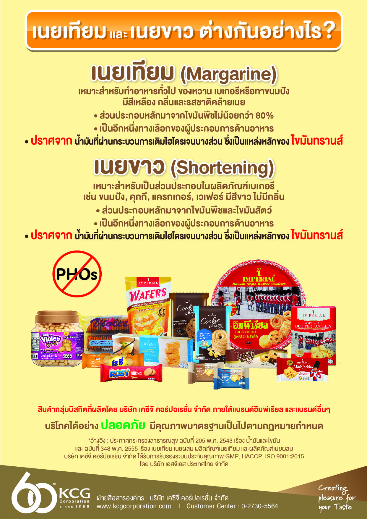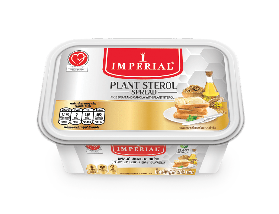 including products "Imperial Plant Sterol spread" with plant sterol extract added to the product and also received a badge "Food for the Heart" from the Heart Foundation of Thailand under the Royal Patronage of His Majesty the King This ensures that this product is not harmful to heart health. Can be purchased at leading supermarkets