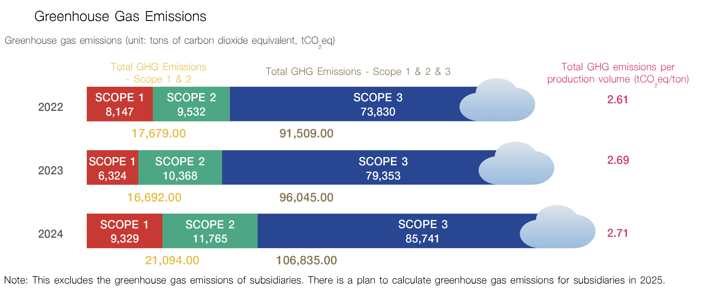 In 2024, the Company consolidated greenhouse gas emissions data from all branches into a single corporate-wide emissions account. This approach ensures accurate reporting, reflecting the Company’s actual emissions and activities while preventing double counting of inter-branch operations and verified by VGreen KU Company Limited.