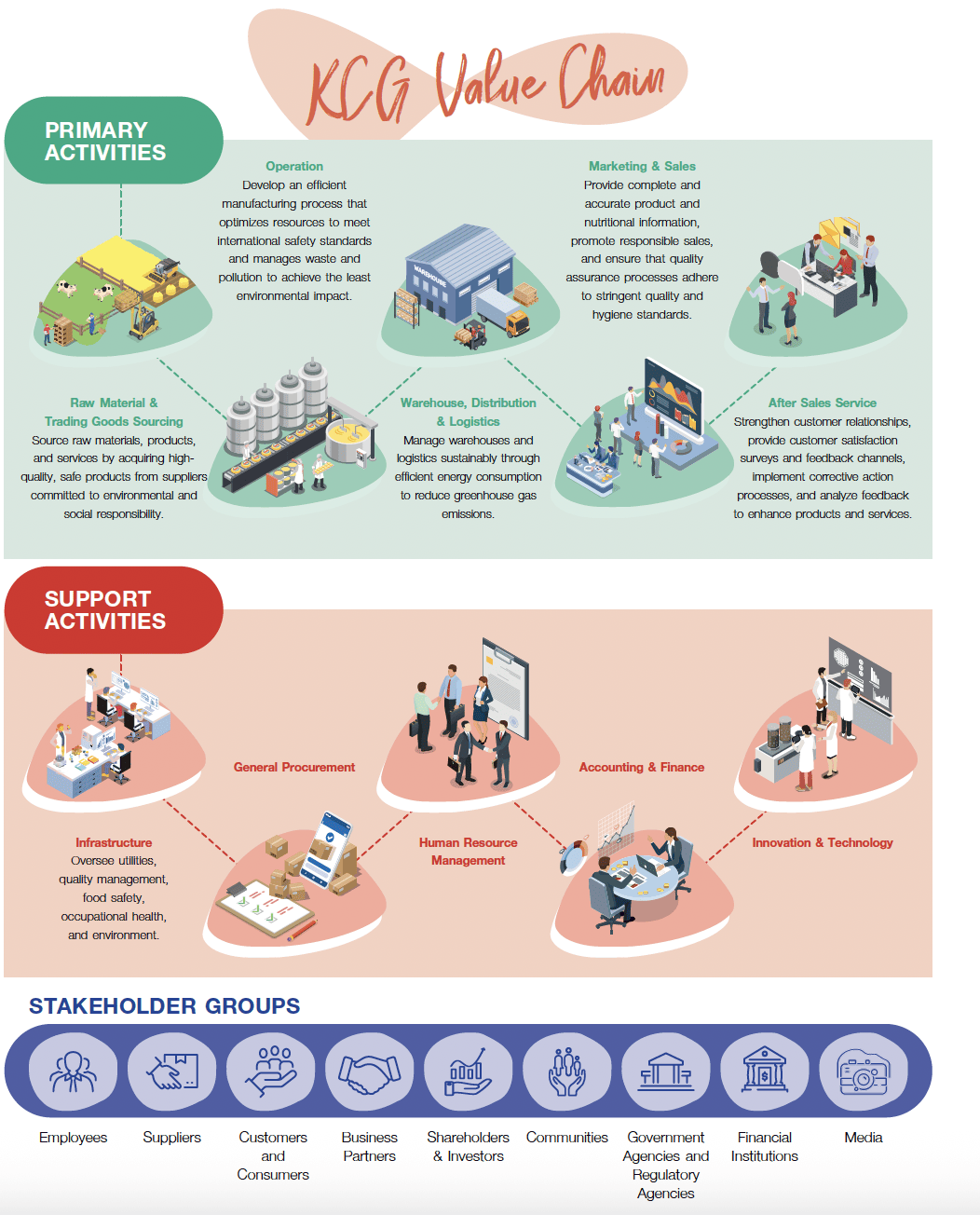 The Company analyzed the business value chain to identify stakeholders, including any impacts that may occur as a result of the Company’s primary activities and support activities within the value chain from upstream to downstream, comprehensively and completely in each dimension. The Company’s value chain is as follows: