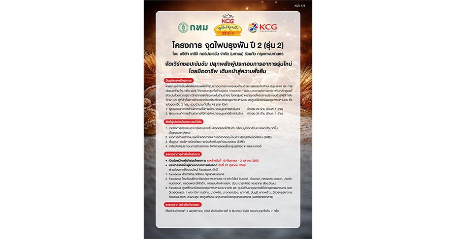 KCG Joins Hands with Bangkok Metropolitan Administration to Launch “Light Up Your Passion, Cook Up Your Dream Project, Season 2 (Batch 2)” An Intensive Workshop for the Next Generation of Food Entrepreneurs – Led by Experts, Built for Sustainability