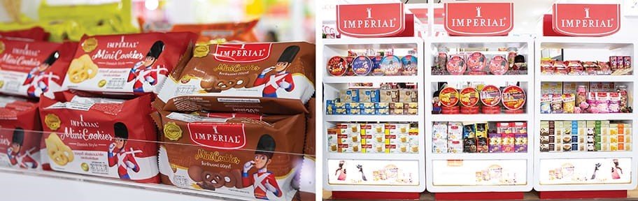 The long well-known Imperial biscuits product, Imperial Danish Style Butter Cookies or known amongst local Thais as the red box cookie, joined the exhibition. Furthermore, it has been rebranded to become Imperial Mini Cookies Danish Style with the slogan "4 Shapes & 4 Styles …Delicious, Chewy, Bite-size Cookie", aimed to penetrate the new generation market. It features trendy brand image and is available in both original and new flavors choco-malt. This newly-launched flavor reinforces the status of Imperials as the pioneering Danish style cookies manufacturer in Thailand and the leader in the Biscuits – Plain Cookies Segment.1