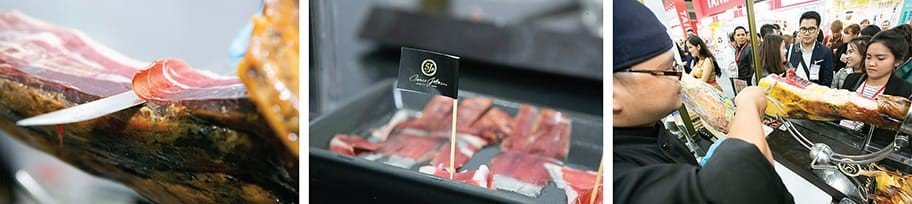 At the last zone, the imported products such as Cheese & Cold cuts; the fine food products were offered to guests. To begin with, one of the products was 5J cured ham from Spain, the superb treat made from the leg of black pig fed with natural acorns nuts in dehesa in the Iberian Peninsula and cured with natural sea salt from Atlantic Ocean for 36 months; this ham is world-renowned from its excellent quality.