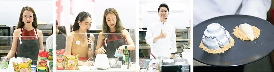 What's more, the true food influencer widely known in the social media, Aum Napat – the owner of Instagram account @aum_napat followed by 674,000 people, demonstrated the making of "Smoked Salmon Sandwich with Italian Pasta Salad" and shared the techniques of food presentation. The other two were Dr. Tum, Master Chef Season 2 contestant, and also the owner of the Facebook fanpage "EAT Matters: by หมอตั้ม" followed by over 73,000 people,who presented the recipe "The man in the high castle" (Durian chocolate mousse cheese cake) and miss Sai, from the social media page "Bakery Society", who demonstrated dishes