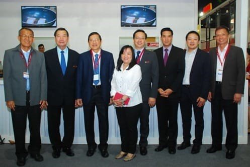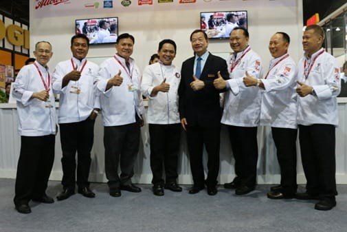 “Somsak Rarongkham” (third from right) Chairman of Thai Chef Association and delegates were seen at the booth.