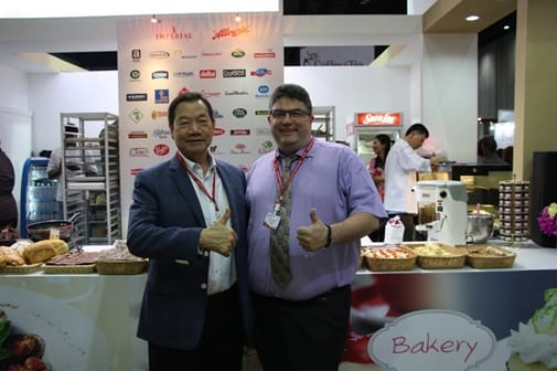 “Tong Dhiranusornkit” (fourth from right), President and Chief Executive Officer of KCG Corporation, welcomed “Porntarapee Chinachote” (forth from left), President of Bangkok Exhibition Service Co., Ltd, President of the Thai Exhibition Association, and committee member of the Thai Hotel Association, to KCG’s booth at the Food & Hotel Thailand 2014 exhibition. Held for the 22nd time, the exhibition displayed premium products for five-star businesses in the service industry of Thailand and Asia. KCG brought Imperial cookies, biscuits, and bakery ingredients, Allowrie butter and cheese, Sunquick fruit juice, and over 200 types of quality products from all over the globe to display at the exhibition. These include President cheese from France, Emmi cheese from Switzerland, Galbani ham and sausages from Italy, Jamondor ham and sausages from Spain, Lamb Weston French Fries from the USA, and Angel Bay hamburgers from meat and lamb. Baked goods include croissants, pies, tarts, and pastries. Professional chefs of KCG were also demonstrating preparations of gourmet menus and pastries. The exhibition was held at the Bangkok International Trade and Exhibition Center (BITEC Bangna) on 10-13 September 2014.