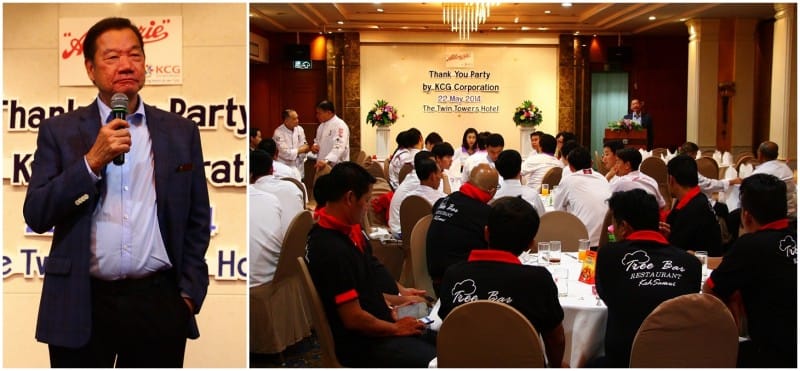 “สมาคมเชฟแห่งประเทศไทย” จัดงานแข่งขันปรุงอาหาร “Thailand Ultimate Chef Challenge 2014” เพื่อค้นหาสุดยอดเชฟแห่งปี 2557 ในงาน “THAIFEX – WORLD OF FOOD ASIA 2014” และได้จัดเลี้ยงขอบคุณคณะกรรมการ ผู้เข้าร่วมแข่งขันทั้งในประเทศและต่างประเทศกว่า 150 ท่าน โดยได้รับเกียรติและการสนับสนุนจาก “คุณตง ธีระนุสรณ์กิจ” (ภาพบนซ้าย) กรรมการผู้อำนวยการใหญ่และประธานเจ้าหน้าที่บริหาร เคซีจี คอร์ปอเรชั่น ในฐานะเจ้าภาพงานเลี้ยงต้อนรับ และกล่าวแนะนำสินค้าของบริษัท เพื่อให้เชฟทุกท่านได้ทราบถึงข้อมูลของผลิตภัณฑ์แต่ละชนิด ว่าเป็นส่วนผสมและวัตถุดิบในการทำเบเกอรี่และอาหารที่มีคุณภาพ ผ่านการรับรองคุณภาพตามมาตรฐานสากล เป็นที่ยอมรับของเชฟและผู้บริโภคมายาวนานกว่า 55 ปี ซึ่งงานดังกล่าวจัดขึ้นที่ โรงแรมเดอะทวินทาวเวอร์ กรุงเทพฯ เมื่อวันที่ 22 พฤษภาคม 2557 ที่ผ่านมา…