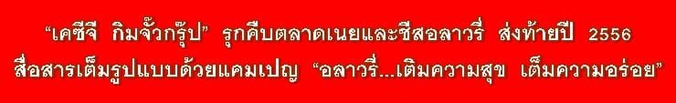 “คุณตง ธีระนุสรณ์กิจ” (คนกลาง) กรรมการผู้อำนวยการใหญ่และประธานเจ้าหน้าที่บริหาร เคซีจี กิมจั๊วกรุ๊ป (KCG – Kim Chua Group) ผู้บุกเบิกตลาดเนยและชีสในประเทศไทยมากว่า 50 ปี ทั้งยังเป็นผู้นำเข้าสินค้าอาหารสำเร็จรูป, ผู้ผลิตและจัดจำหน่ายสินค้าบริโภคที่มีคุณภาพรายใหญ่ในประเทศไทย อาทิ บิสกิตตรา “อิมพีเรียล” เนยและชีสตรา “อลาวรี่” น้ำผลไม้เข้มข้นตรา “ซันควิก” ฯลฯ เปิดเผยว่าจะทำการตลาดในเชิงรุก ส่งท้ายปี 2556 ผลิตภัณฑ์เนยและชีสอลาวรี่ ด้วยแคมเปญ “อลาวรี่…เติมความสุข เต็มความอร่อย” เสริมสร้างความรู้ความเข้าใจ (Educate) ประโยชน์ของเนยและชีสพร้อมทั้งสร้างความรักความผูกพันในครอบครัว กับแบรนด์อลาวรี่ (Brand Engagement) ต่อยอดจากแคมเปญเดิม “อลาวรี่…เติมมากกว่าความอร่อย” ที่เคยทำและประสบความสำเร็จมาแล้วเมื่อปี 2555 เพื่อรักษาความเป็นผู้นำตลาดต่อไป โดยภายในงานมีสองพิธีกรสาวสวย “เจี๊ยบ – อ้อม” ในฐานะแม่บ้านมือใหม่ ชิมและโชว์เมนูสุดพิเศษจากเนยและชีสอลาวรี่ และมินิคอนเสิร์ตจากนักร้องหนุ่มวัยรุ่นขวัญใจมหาชน “ฮั่น เดอะสตาร์” ณ Infinit Hall ชั้น 5 ศูนย์การค้าสยามพารากอน เมื่อวันที่ 15 สิงหาคม 2556 ที่ผ่านมา….
