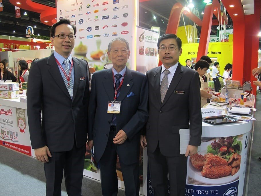 คุณพงษ์ศักดิ์ อัสสกุล (คนกลาง) ประธานกรรมการหอการค้าไทย (คนกลาง) ให้เกียรติมาเยี่ยมชมบู๊ธ เคซีจี กิมจั๊วกรุ๊ป (KCG – Kim Chua Group) โดยมี คุณดำรง วิภาวัฒนกุล (คนขวา) รองกรรมการผู้อำนวยการใหญ่ฝ่ายวางแผนกลยุทธิ์และพัฒนาธุรกิจ และ คุณภูมินทร์ ธีระนุสรณ์กิจ (คนซ้าย) ผู้อำนวยการอาวุโสฝ่ายต่างประเทศ ให้การต้อนรับและพาเยี่ยมชมบูธ KCG
