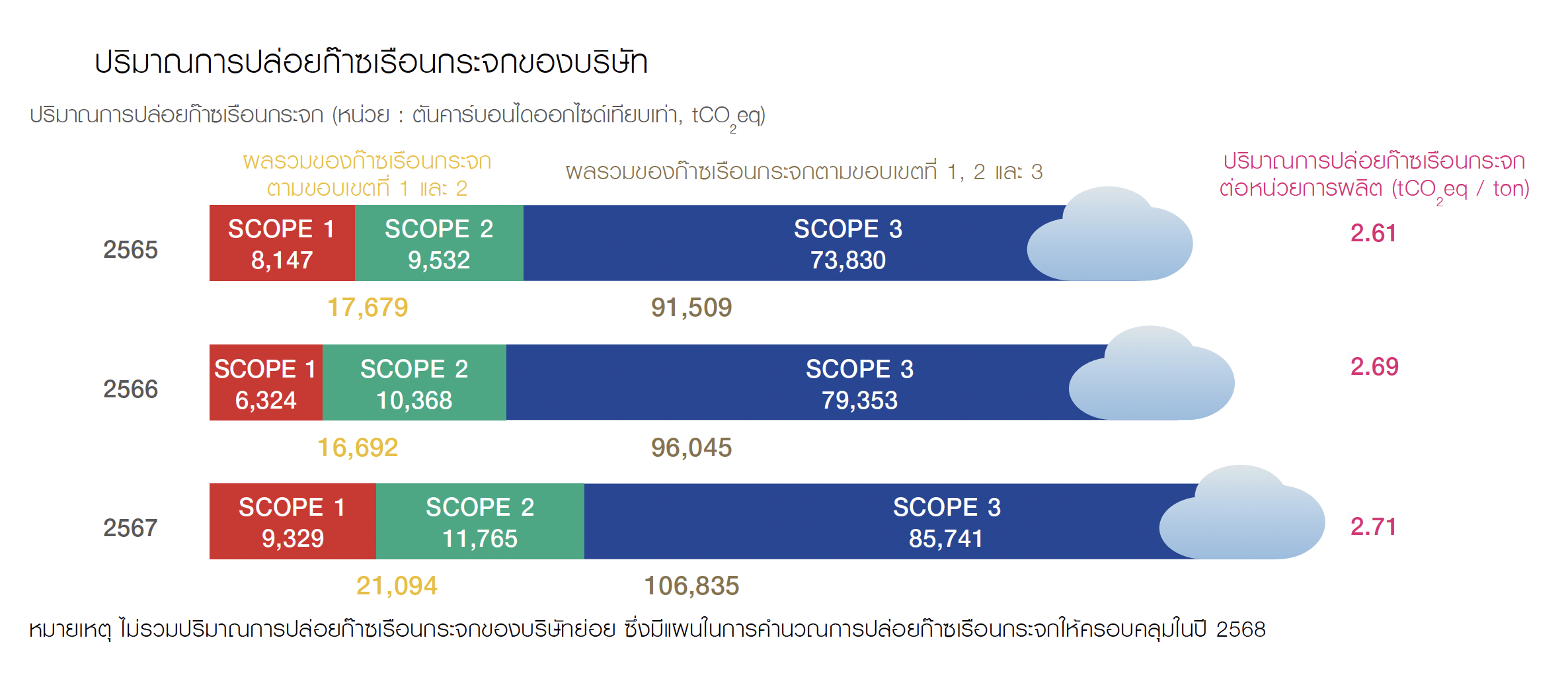 ทั้งนี้บริษัทฯ อยู่ระหว่างการวางแผนในการดำเนินงานมุ่งสู่การปล่อยก๊าซเรือนกระจกเป็นศูนย์ เพื่อให้สามารถบรรลุเป้าหมาย Net Zero (Net Zero Target and Roadmap) ทั้งในระยะสั้นและระยะยาว โดยเป้าหมายในปี 2568 บริษัทฯ ได้วางแผนในการจัดการด้านพลังงานและการจัดการของเสีย เพื่อลดการปล่อยก๊าซเรือนกระจกในขอบเขตที่ 1 และ 2 (Scope 1&2) ซึ่งเป็นการลดจากภายในบริษัทฯ ลดลง 10% จากปริมาณการปล่อยก๊าซเรือนกระจกปีฐาน 2567 และหาแนวทางในการลดก๊าซเรือนกระจกในขอบเขตที่ 3 ซึ่งต้องพัฒนาความร่วมมือกับคู่ค้าในห่วงโซ่คุณค่าต่อไป