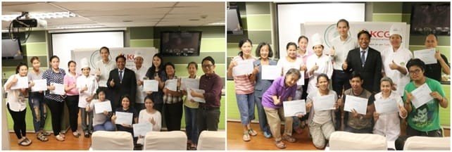 “คุณดวงสมร พันธุเสน” (แถวหน้า – คนที่ 3 จากซ้าย) ที่ปรึกษากรรมการผู้อำนวยการใหญ่และประธานเจ้าหน้าที่บริหาร,”คุณวีระยุทธิ์ กุศลส่งเสริม” (แถวหน้า – ขวาสุด) ผู้อำนวยการฝ่ายสื่อสารองค์กร เคซีจี คอร์ปอเรชั่น ให้เกียรติต้อนรับ ““คุณสุวิทย์ แสงเสน่ห์” (แถวหน้า – คนที่ 2 จากขวา) ผู้อำนวยการกองส่งเสริมอาชีพ สำนักพัฒนาสังคม กรุงเทพมหานคร และคณะนักเรียนจากศูนย์ฝึกอาชีพ กรุงเทพมหานคร 30 ท่าน เข้าร่วมอบรมหลักสูตรการทำเบเกอรี่ เมนู เครปเค้กสตรอเบอร์รี่ซอส,ซูเซทออเร้นจ์ซอส,ช็อคโกแลตบานาน่าเครปโรล และอาหาร เมนู ข้าวหมูอบ,เมี่ยงก๊วยเตี๋ยวไก่ย่าง,ข้าวราดหน้าไก่ ในโครงการ “แบ่งปันสูตรเด็ดจากใจ KCG” ซึ่งเป็นหนึ่งในกิจกรรมเพื่อสังคม (CSR) ด้านสังคมและสิ่งแวดล้อม มีวัตถุประสงค์เพื่อถ่ายทอดความรู้และเทคนิคการทำอาหารและเบเกอรี่ จากอาจารย์ของโรงเรียนสอนศิลปะการทำเบเกอรี่และอาหารอิมพีเรียล(IBAF) ที่มากด้วยความรู้และประสบการณ์ ถ่ายทอดสู่ประชาชนหรือผู้เรียนได้รับทราบและนำไปปฏิบัติจริง เพื่อนำไปประกอบอาชีพ เลี้ยงตนเองและครอบครัว ณ โรงเรียนสอนศิลปะการทำเบเกอรี่และอาหารอิมพีเรียล(IBAF) เมื่อวันจันทร์ที่ 3 สิงหาคม 2558 ที่ผ่านมา…